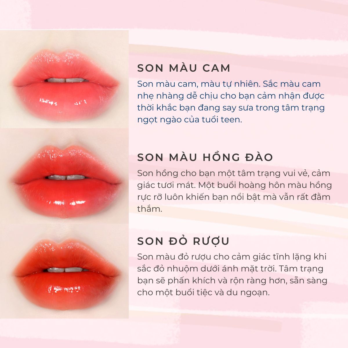 ✔️Thoa lên sau khi đánh son kem hoặc son lì, có tác dụng như son bóng, giữ môi mềm mại và mịn màng, không gây nứt nẻ.